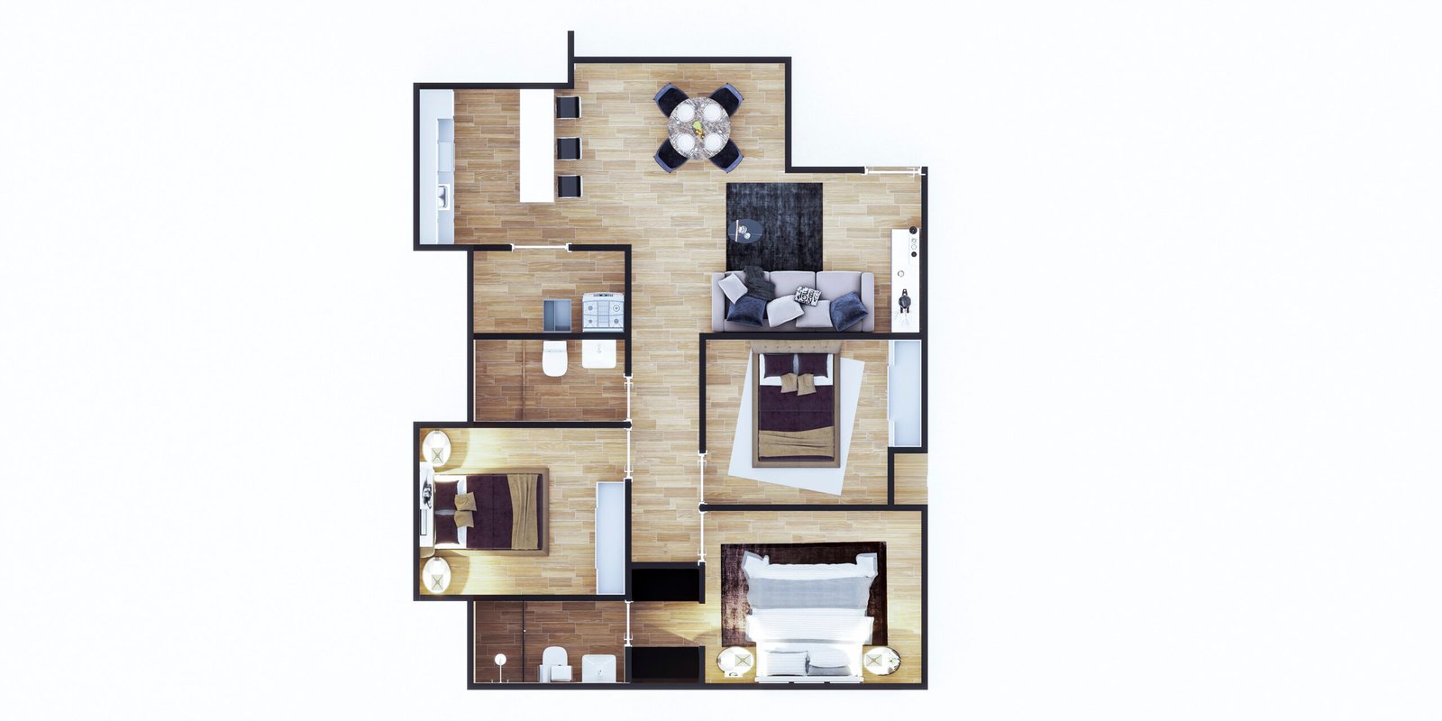 Cocina, estancia, recámaras, baños